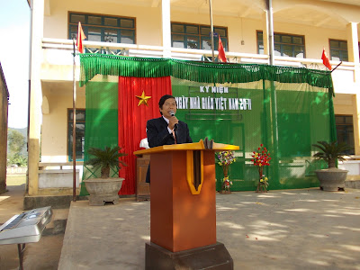 Thầy giáo Lưu Hùng Sơn đọc diễn văn ngày 20/11