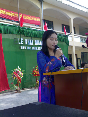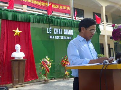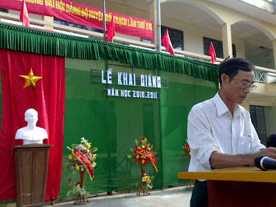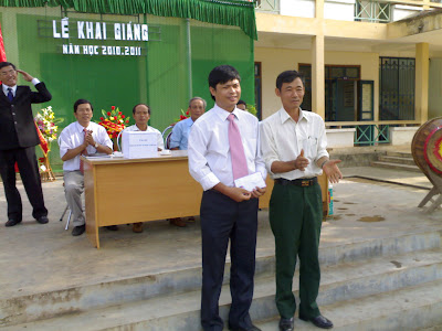 Thầy Trần Đình Tấn Chủ tịch công đoàn, phó hiệu trưởng nhà trường chỉ đâọ buổi lễ. |