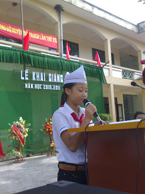 Đại diện học sinh của trường xin hứa trước các thầy cô và cha mẹ sẽ cố gắng học tập và rèn luyện để trở thành con ngoan trò giỏi, xứng đáng là học sinh ngoan hiền của trường. |